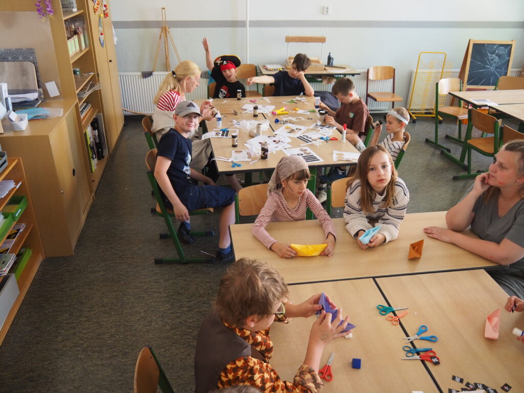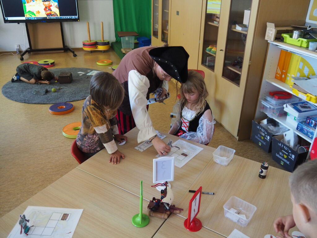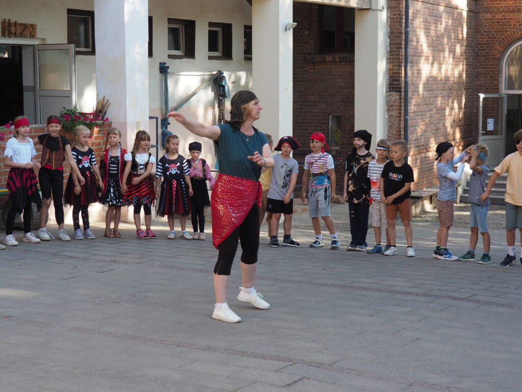 Für einen Tag wurde die Grundschule MUTIG gekapert. In den Räumen und auf dem Hof wurden wilde Tänze geprobt, Schiffe versenkt, Schiffsbau studiert und Inseln mit Schätzen gesucht.