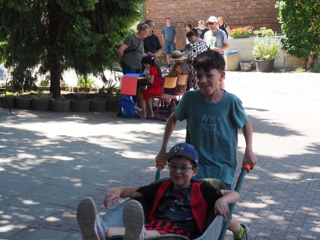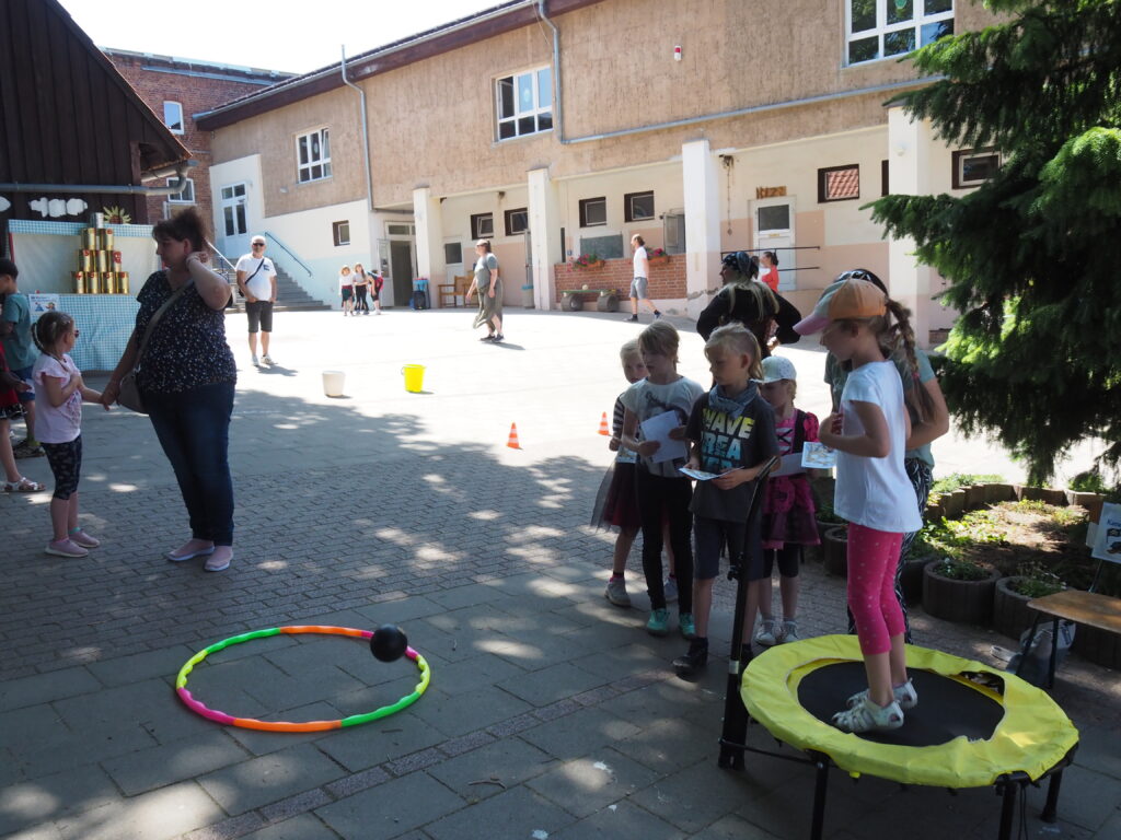 Am Nachmittag ging es auf dem Schulhof bei strahlendem Sonnenschein mit Bewegungs und Geschicklichkeitsspielen weiter.